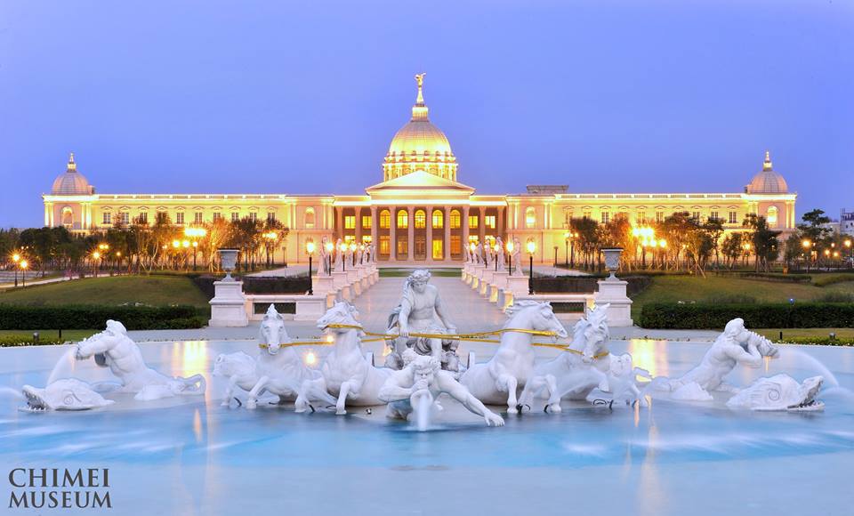 在戶外,奇美博物館座落於臺南都會公園,呼應「西洋藝術」的蒐藏方向,整體建築園區以西洋古典美學為風格,打造兼具景觀、休閒、無障礙的多元空間,為全台最美地標之一。