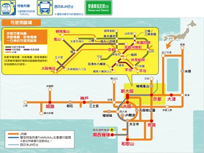 『關西地區鐵路周遊券』可選擇一日、二日、三日、四日或廣域五日票,搭乘JR遊覽關西地區。